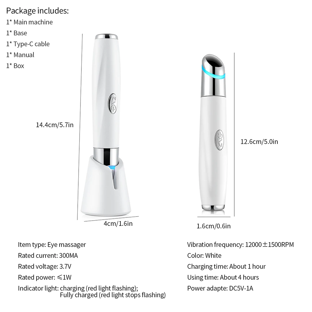 Package Includes: 1 electric eye massager, charging cable, user manual