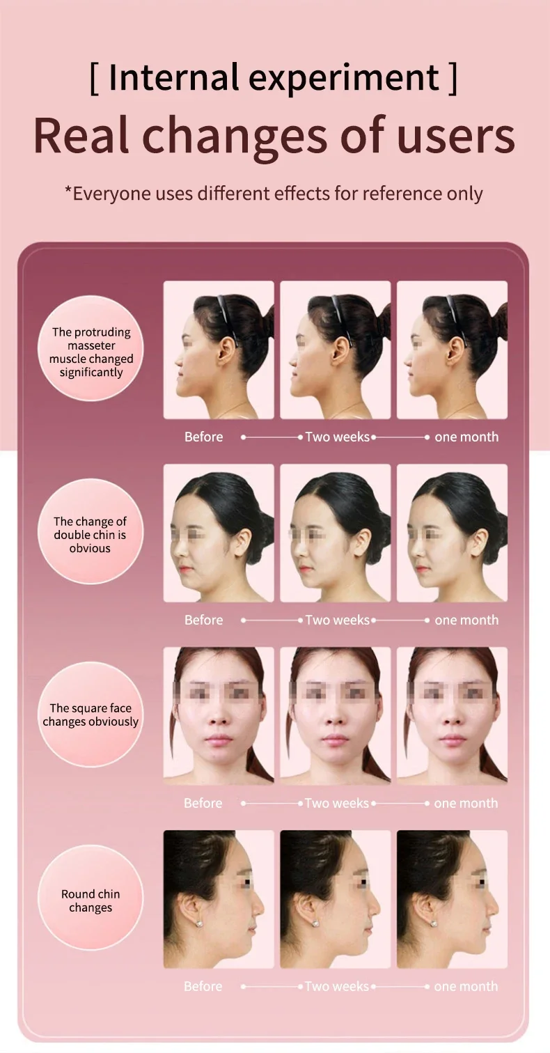 Compact mode: 4-5 people with moderately stressed masseter muscle hypertrophy and double chin