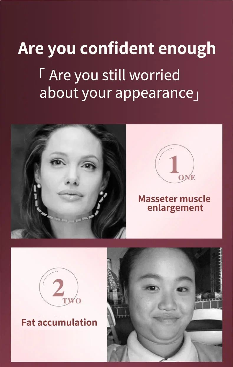 1. Masseter muscle enlargement | 2. Fat accumulation | 3. Muscle relaxation | 4 .Unclear outline