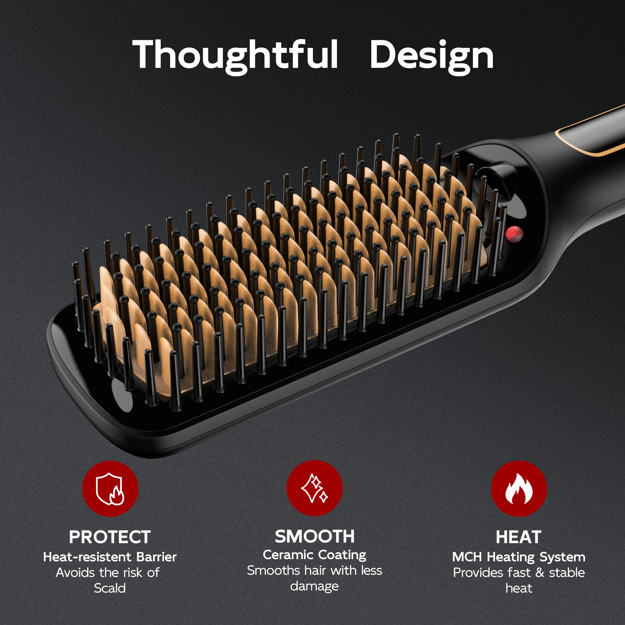 Hair straightening brush with LED temperature display